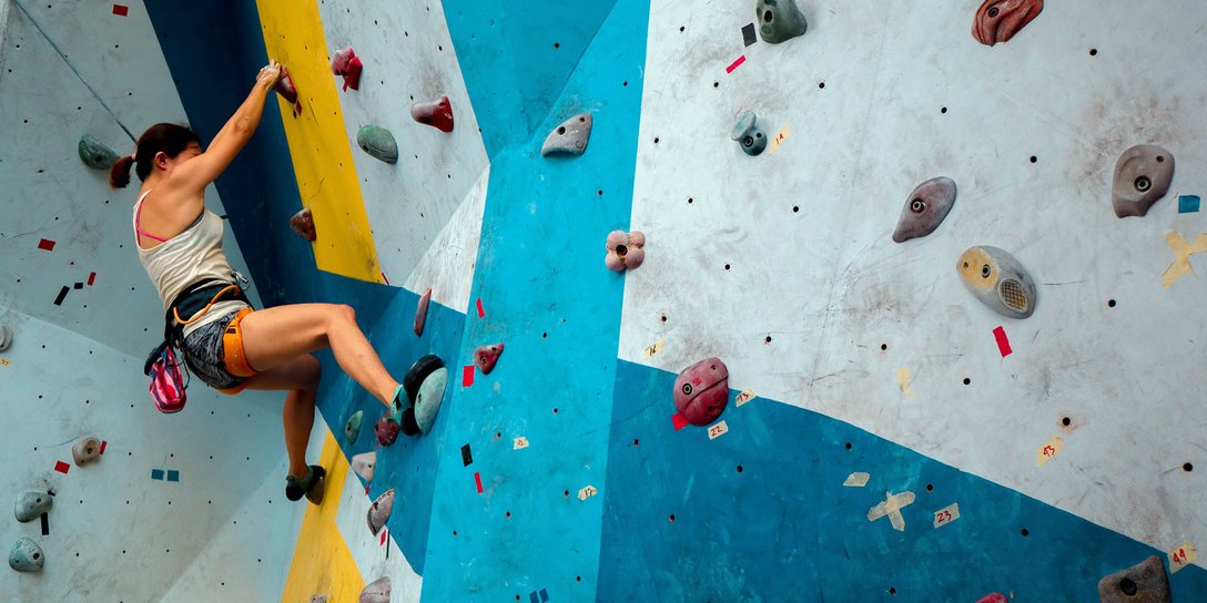 Prova på att klättra i Dalarnas största inomhus-klätterhall Mono Loco med massor av roliga och utmanande väggar.