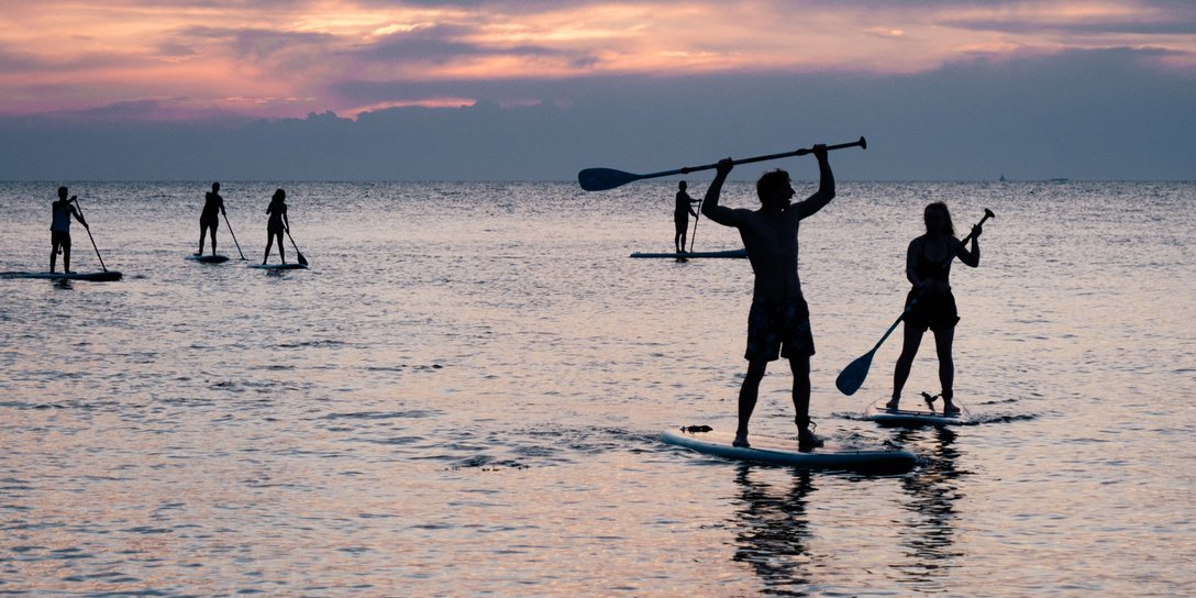 Lillebror till kitesurfing! Du som också vill gå på vatten, men föredrar att göra det i lugnare mak. Mer glida än rusa fram. Du vill hitta mellantinget mellan solstolen och stenhårt styrkepass. Då är SUP för dig! På Bödagården finns enklare mer nybörjarvänliga brädor att låna. Vi rekommenderar dock att hyra SUP på Bödasand. Kanske uppleva soluppgången på en SUP på ett stilla hav en morgon?